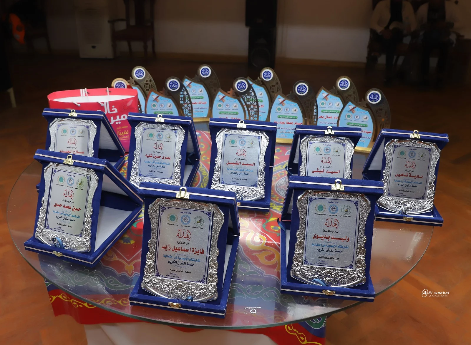 القران كاملا الفئة الاولى : فاز كلا من حسام جمعة عبد ربه ( الاول فى حفظ القران الكريم كاملا )وضياء مصطفى حجر( الثانى ) وسلمى هانى المسلمانى ونورهان عماد كمال وسما هانى المسلمانى وعبدالله محمد ابراهيم ادريس والاء وليد مرعى واسماء جمال بحر وحنين جمعة ايوب
