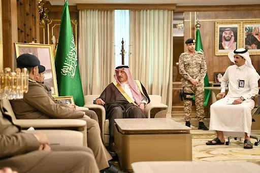 واستمع سموه خلال الاستقبال، لإيجاز من اللواء القحطاني عن سير العمل في المديرية والإدارات التابعة لها في مدينة جيزان ومحافظات ومراكز المنطقة، والإمكانات التي وفرتها القيادة الحكيمة من كوادر بشرية وآليات وتجهيزات وإمكانات حديثة تسهم في تأدية أعمال الدفاع المدني على الوجه الأكمل.